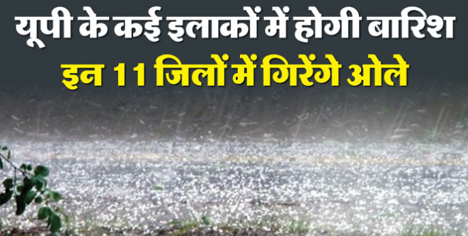 उत्तर प्रदेश के माैसम में शुक्रवार से दोबारा बदलाव के संकेत हैं। माैसम विभाग का कहना है कि नए पश्चिमी विक्षोभ के असर से सहारनपुर, शामली, मेरठ, नोएडा समेत पश्चिम के 18 जिलों में तेज हवा और गरज चमक के साथ बूंदाबांदी की संभावना है। शुक्रवार और शनिवार के बीच बारिश के साथ ही इन जिलों में वज्रपात और ओले गिरने की भी आशंका जताई गई है। करीब 11 जिलों में ओले गिर सकते हैं।