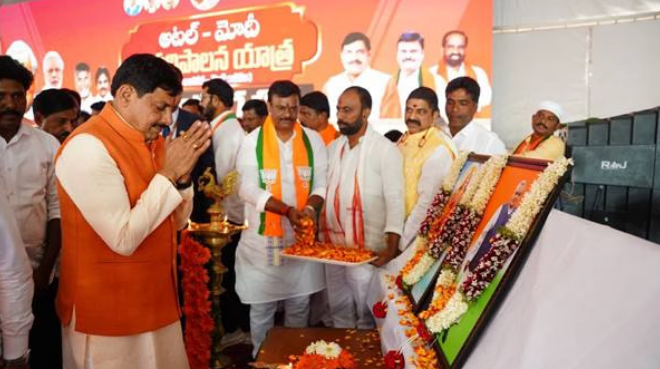 मुख्यमंत्री ने बताया कि वाजपेयी जी के जन्मशताब्दी वर्ष में यह 15 दिवसीय यात्रा आंध्र प्रदेश के 20 जिलों तक जाएगी और 25 दिसंबर को उनकी जयंती पर यात्रा का समापन होगा। धर्मावरम में स्व. वाजपेयी की प्रतिमा का अनावरण भी किया गया। डॉ. यादव ने कहा कि ग्वालियर में जन्मे वाजपेयी ने अपनी प्रतिभा और सरल स्वभाव से दुनिया भर में सम्मान पाया।