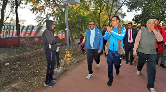 मुख्यमंत्री भजनलाल शर्मा शनिवार तड़के अचानक जवाहर सर्किल पहुंचे और आम लोगों के साथ करीब आधे घंटे तक मार्निंग वॉक की। इस दौरान सुरक्षा व्यवस्था बेहद सीमित रही और मुख्यमंत्री ने प्रोटोकॉल को भी साइड में रख दिया। सामान्य दिनों में मुख्यमंत्री के लिए रूट लगाया जाता है, लेकिन आज बिना किसी पूर्व सूचना के वे सीधे पार्क पहुंच गए।