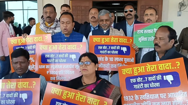 भाजपा विधायकों का आरोप है कि हेमंत सोरेन की सरकार ने सत्ता में आने से पहले सात प्रमुख वादे किए थे, जिनमें साढ़े चार सौ रुपये में गैस सिलिंडर, हर साल दस लाख युवाओं को रोजगार, तथा गरीबों को समय पर छात्रवृत्ति जैसे मुद्दे शामिल थे। लेकिन सरकार एक भी वचन पर खरी नहीं उतर सकी है। उनका कहना है कि सरकार विकास योजनाओं की बजाय बालू और संसाधनों की बंदरबांट में व्यस्त है। छात्रवृत्ति, विधवा पेंशन और मइया सम्मान योजना जैसी कई लाभकारी योजनाएं ठप पड़ी हैं, जिससे जनता निराश है। बीजेपी विधायकों ने कहा कि सात वचनों को पूरा होने तक वे सदन से सड़क तक आंदोलन जारी रखेंगे।
