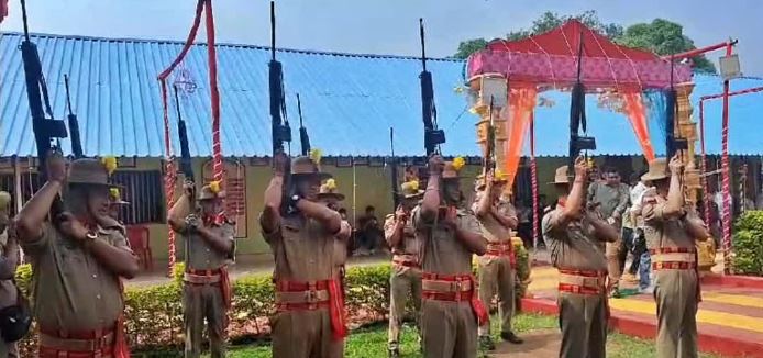 रांची: झारखंड सशस्त्र पुलिस (जेएपी) की पहली बटालियन के जवानों ने सदियों पुरानी परंपरा के तहत बीते बुधवार को महानवमी के अवसर पर शस्त्र पूजा की और देवी दुर्गा को बंदूक की सलामी दी।