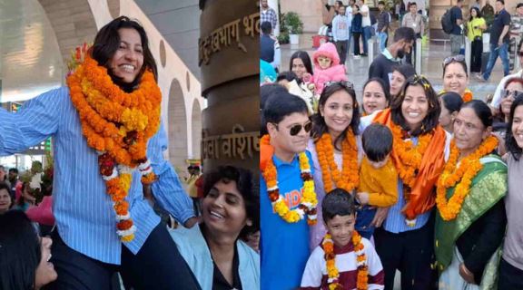 भारत के महिला क्रिकेट विश्व कप जीतने के बाद पहली बार देहरादून एयरपोर्ट पहुंची ऑल राउंडर स्नेह राणा का देहरादून एयरपोर्ट पर ढोल नगाड़ों के साथ स्वागत किया। स्नेह राणा सनौला, देहरादून की रहने वाली हैं। भारतीय महिला क्रिकेट टीम में ऑलराउंडर स्नेहा राणा ने देहरादून एयरपोर्ट पर कहा कि टीम इंडिया की कड़ी मेहनत से विश्व कप जीत पाए हैं।