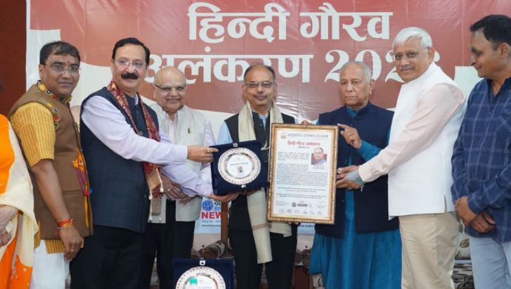 नर्मदाप्रसाद उपाध्याय और अतुल तारे को मिला हिन्दी गौरव अलंकरण
