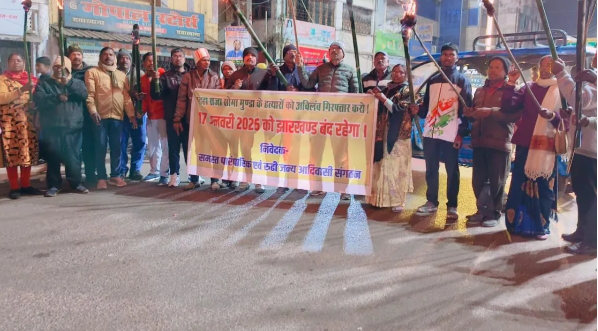 आदिवासी संगठनों ने पड़हा राजा सोमा मुंडा की हत्या में शामिल अपराधियों की शीघ्र गिरफ्तारी, पीड़ित परिवार को न्याय और आदिवासी पारंपरिक व्यवस्था की रक्षा करने की मांग को लेकर शनिवार को झारखंड बंद का आह्वान किया है। इसी उद्देश्य से मशाल जुलूस निकाल कर एकजुटता प्रदर्शित किया है।