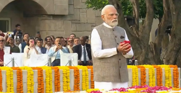 पीएम मोदी ने महात्मा गांधी को किया नमन, राजघाट पर श्रद्धांजलि अर्पित की