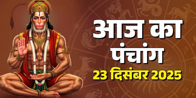 पंचांग के अनुसार, आज यानी 23 दिसंबर को पौष माह के शुक्ल पक्ष की तृतीया तिथि है। इस तिथि पर हनुमान जी की विशेष पूजा-अर्चना की जा रही है। धार्मिक मान्यता के अनुसार, हनुमान जी की पूजा करने से साधक के जीवन में आ रहे दुख और संकट दूर होते हैं। आज कई शुभ योग भी बन रहे हैं। ऐसे में आइए जानते हैं आज का पंचांग (Aaj ka Panchang 23 December 2025) के बारे में।