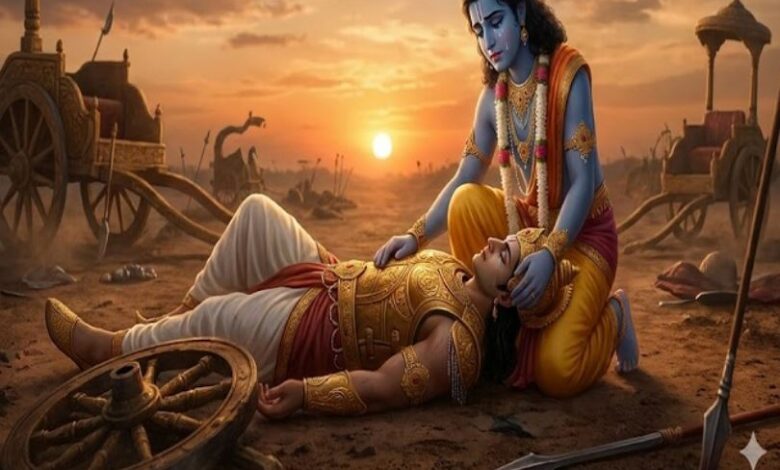 महाभारत कथा के अनुसार, कर्ण का अंत तब हुआ जब वह असहाय थे, उनका रथ धरती में धंसा था और वह शस्त्रहीन थे। अर्जुन के बाण ने जब कर्ण का शीश काटा, तो पांडव की ओर विजय का शंखनाद हुआ, लेकिन श्रीकृष्ण के मुख पर जरा सी भी मुस्कान नहीं थी। कृष्ण जानते थे कि जिस योद्धा को उन्होंने छल और नीति से हराया, वह खुद धर्म का साक्षात स्वरूप था।
