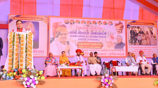 मुख्यमंत्री भजनलाल शर्मा ने कहा कि प्रधानमंत्री नरेंद्र मोदी के नेतृत्व में राज्य की डबल इंजन सरकार राजस्थान की 8 करोड़ जनता के सर्वांगीण विकास के लिए समर्पित है। उन्होंने कहा कि सरकार पारदर्शिता और जवाबदेही के साथ काम कर रही है तथा हर योजना का लाभ सीधे लाभार्थियों तक पहुंच रहा है। मुख्यमंत्री मंगलवार को पाली जिले के चामुंडेरी राणावतान में बाली विधानसभा क्षेत्र में आयोजित लोकार्पण एवं शिलान्यास समारोह को संबोधित कर रहे थे। उन्होंने कहा कि प्रदेश में अच्छी बारिश से फसलें बेहतर स्थिति में हैं और जलस्रोतों में भी पानी भर चुका है। नवीन बालिका विद्यालय भवन के लोकार्पण को उन्होंने “बालिका शिक्षा सशक्तीकरण” की दिशा में महत्वपूर्ण कदम बताया, वहीं नाडोल–सादड़ी एमडीआर रोड के लोकार्पण से क्षेत्रवासियों के आवागमन में सुविधा बढ़ेगी।