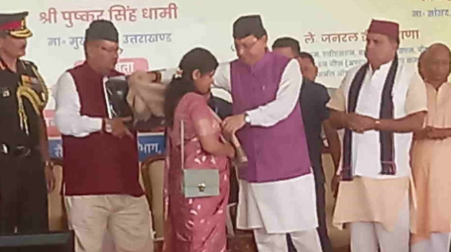 उत्तराखंड: उन्होंने सम्मान समारोह में शहीदों के परिजनों को सम्मानित किया। इस दौरान सैनिक कल्याण मंत्री गणेश जोशी भी मौजूद रहे।