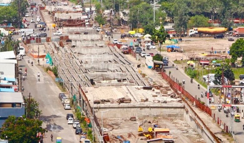 सड़क के बीच में बिछी है नर्मदा लाइन,आसान नहीं होगा एलिवेटेड काॅरिडोर बनाना