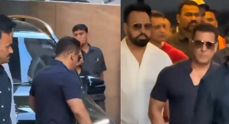 सलमान खान स्वैग और भारी सिक्योरिटी के साथ मुंबई एयरपोर्ट पर स्पॉट हुए। जैसे ही सोशल मीडिया पर वीडियो सामने आया, सबकी निगाहें अभिनेता की फिटनेस और नए लुक पर अटक गईं। ब्लैक जींस, नेवी ब्लू टीशर्ट और ब्राउन शेड चश्मा लगाए सल्लू मियां बहुत ही हैंडसम लग रहे हैं।